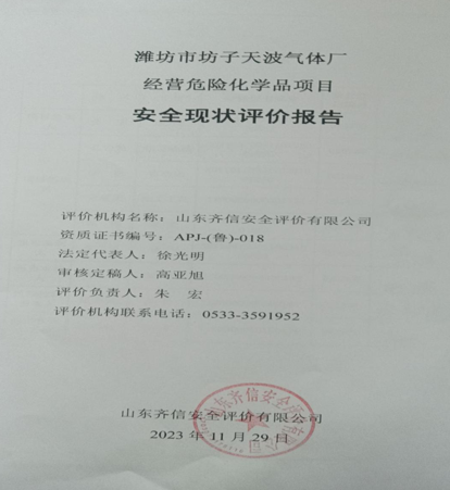| 濰坊市坊子天波氣體廠安全評價報告 |