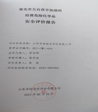 | 壽光市五臺(tái)昌宇加油站安全評(píng)價(jià)報(bào)告 |