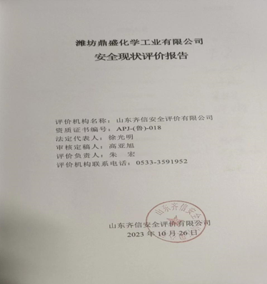| 濰坊鼎盛化學(xué)工業(yè)有限公司安全評價(jià)報(bào)告 |