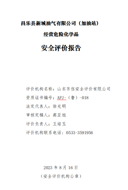 | 昌樂縣新城油氣有限公司經(jīng)營危險化學(xué)品項目安全現(xiàn)狀評價報告 |
