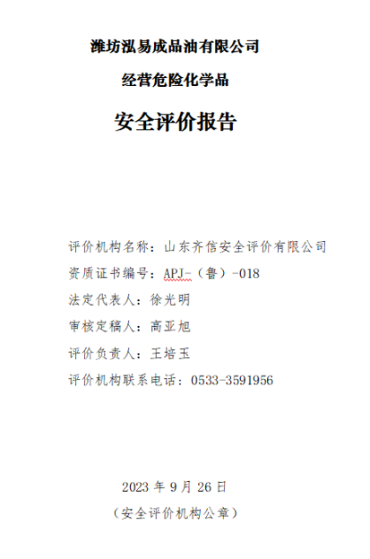 | 濰坊泓易成品油有限公司經(jīng)營(yíng)危險(xiǎn)化學(xué)品項(xiàng)目安全現(xiàn)狀評(píng)價(jià)報(bào)告 |