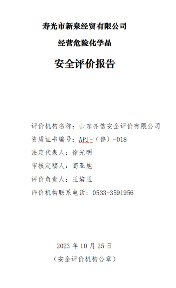 | 壽光市新泉經(jīng)貿(mào)有限公司經(jīng)營危險化學(xué)品項目安全現(xiàn)狀評價報告 |
