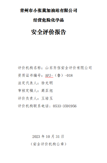 | 青州市小張冀加油站有限公司經(jīng)營危險化學(xué)品項目安全現(xiàn)狀評價報告 |