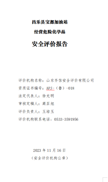 | 昌樂縣寶都加油站經(jīng)營危險(xiǎn)化學(xué)品項(xiàng)目安全現(xiàn)狀評價(jià)報(bào)告 |