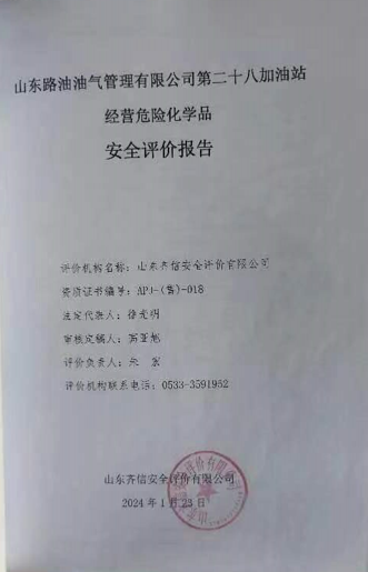 | 山東路油油氣管理有限公司第二十八加油站安全評價報告 |