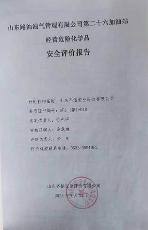 | 山東路油油氣管理有限公司第二十六加油站安全評價報告 |