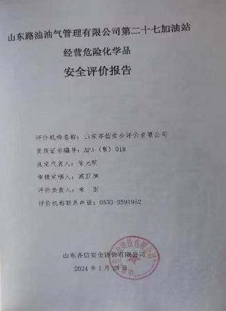 | 山東路油油氣管理有限公司第二十七加油站安全評價報告 |
