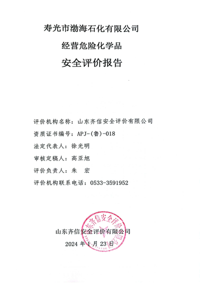 | 壽光市渤海石化有限公司安全評價(jià)報(bào)告 |