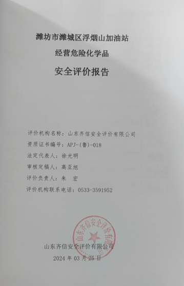 | 濰坊市濰城區(qū)浮煙山加油站安全評(píng)價(jià)報(bào)告 |