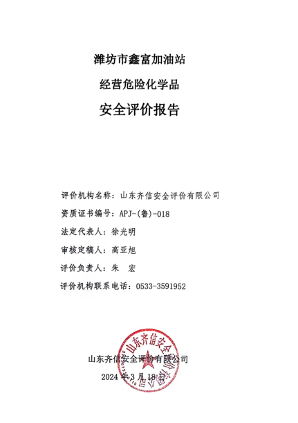 | 濰坊市鑫富加油站安全評(píng)價(jià)報(bào)告 |
