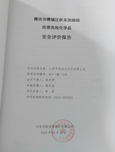 | 濰坊市濰城區(qū)躍東加油站安全評(píng)價(jià)報(bào)告 |