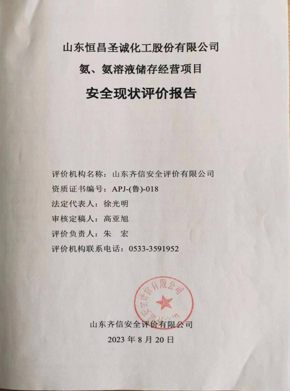 | 山東恒昌圣誠(chéng)化工股份有限公司安全評(píng)價(jià)報(bào)告 |