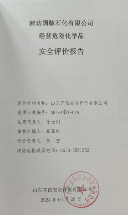 | 濰坊國(guó)脈石化有限公司安全評(píng)價(jià)報(bào)告 |