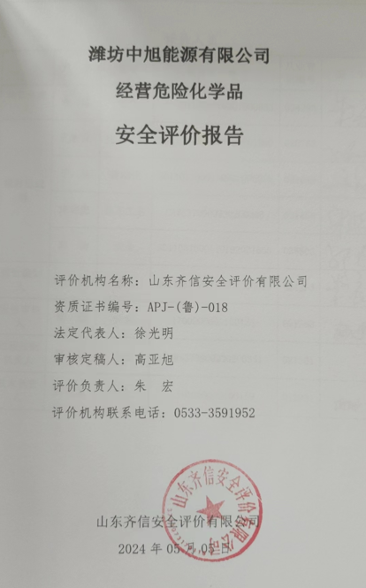 | 濰坊中旭能源有限公司安全評價報告 |