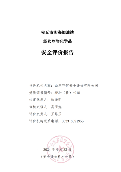 | 安丘市湘海加油站經(jīng)營危險(xiǎn)化學(xué)品項(xiàng)目安全現(xiàn)狀評(píng)價(jià)報(bào)告 |