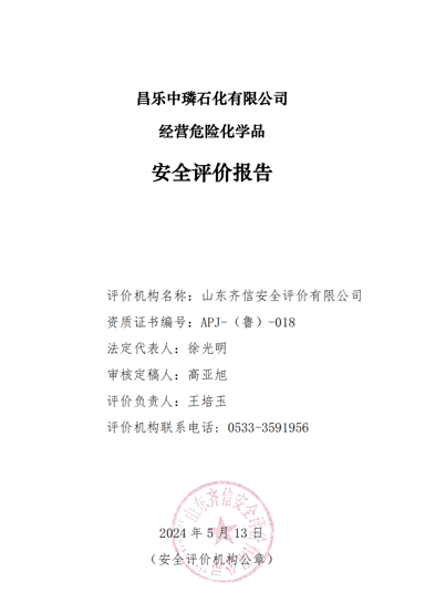 | 昌樂中璘石化有限公司經(jīng)營(yíng)危險(xiǎn)化學(xué)品項(xiàng)目安全現(xiàn)狀評(píng)價(jià)報(bào)告 |