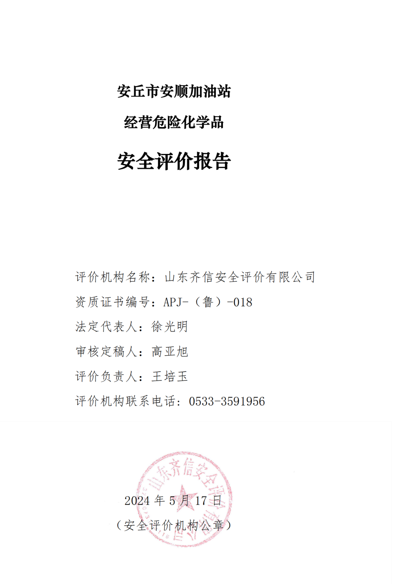 | 安丘市安順加油站 經(jīng)營(yíng)危險(xiǎn)化學(xué)品安全評(píng)價(jià)報(bào)告 |