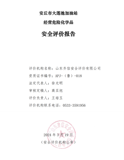 | 安丘市大蓮池加油站 經(jīng)營危險化學(xué)品項目安全現(xiàn)狀評價報告 |