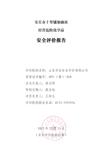 | 安丘市十里鋪加油站 經(jīng)營危險化學品項目安全現(xiàn)狀評價報告 |