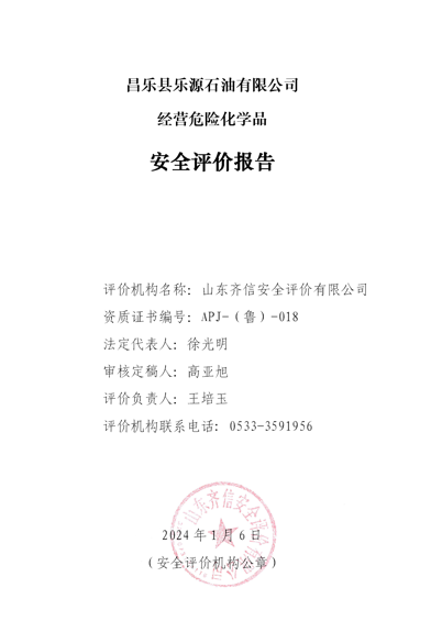 | 昌樂縣樂源石油有限公司 經(jīng)營危險化學(xué)品項目安全現(xiàn)狀評價報告 |