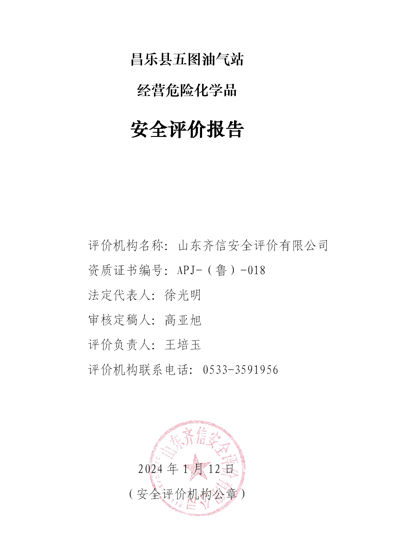 | 昌樂縣五圖油氣站 經營危險化學品項目安全現(xiàn)狀評價報告 |