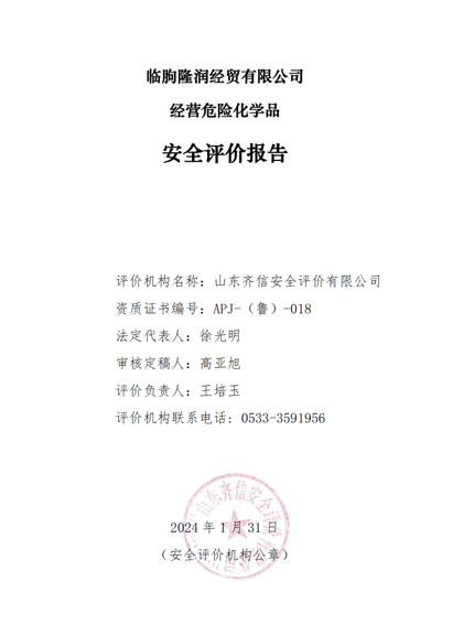 | 臨朐隆潤經(jīng)貿(mào)有限公司 經(jīng)營危險化學(xué)品項目安全現(xiàn)狀評價報告 |