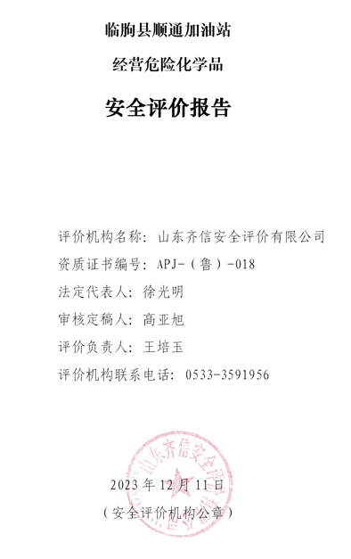 | 臨朐縣順通加油站 經(jīng)營(yíng)危險(xiǎn)化學(xué)品項(xiàng)目安全現(xiàn)狀評(píng)價(jià)報(bào)告 |