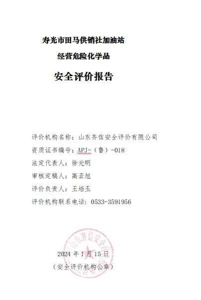| 壽光市田馬供銷社加油站 經(jīng)營危險(xiǎn)化學(xué)品項(xiàng)目安全現(xiàn)狀評價(jià)報(bào)告 |