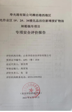 | 壽光港有限公司濰坊港西港區(qū)壽光作業(yè)區(qū)1#、2#、3#液化品泊位新增廢礦物油卸船裝車項目專項安全評價報告 |