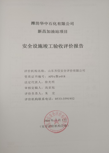 | 濰坊華中石化有限公司新昌加油站安全設(shè)施竣工驗(yàn)收評(píng)價(jià)報(bào)告 |