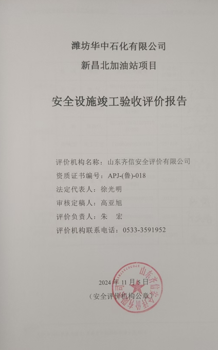 | 濰坊華中石化有限公司新昌北加油站 安全設(shè)施竣工驗(yàn)收評(píng)價(jià)報(bào)告 |
