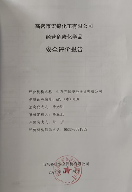 | 高密市宏錦化工有限公司安全評價報告 |
