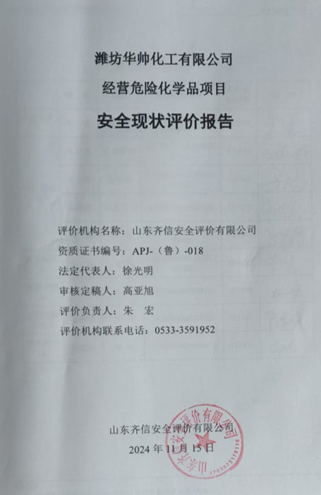 | 濰坊華帥化工有限公司安全評價報(bào)告 |
