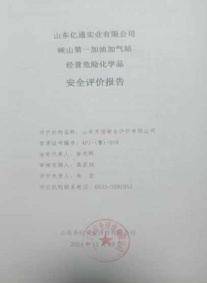 | 山東億通實(shí)業(yè)有限公司峽山第一加油加氣站安全評價(jià)報(bào)告 |