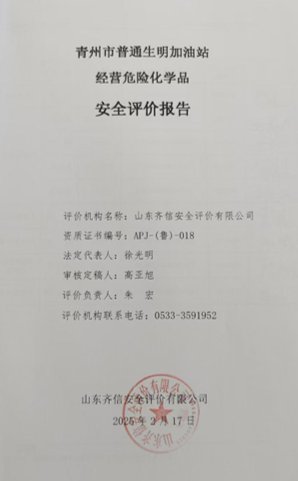 | 青州市普通生明加油站經(jīng)營危險化學(xué)品安全評價報告 |