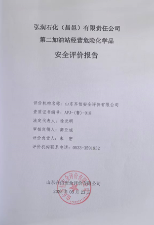 | 弘潤(rùn)石化(昌邑)有限責(zé)任公司第二加油站安全評(píng)價(jià)報(bào)告 |