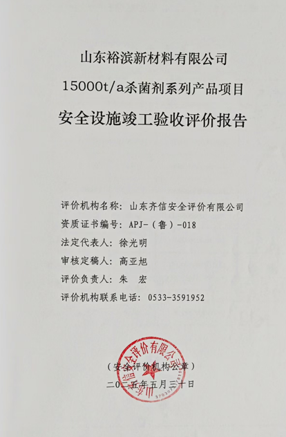 | 山東裕濱新材料有限公司15000t/a殺菌劑系列產(chǎn)品項目 安全設(shè)施竣工驗收評價報告 |