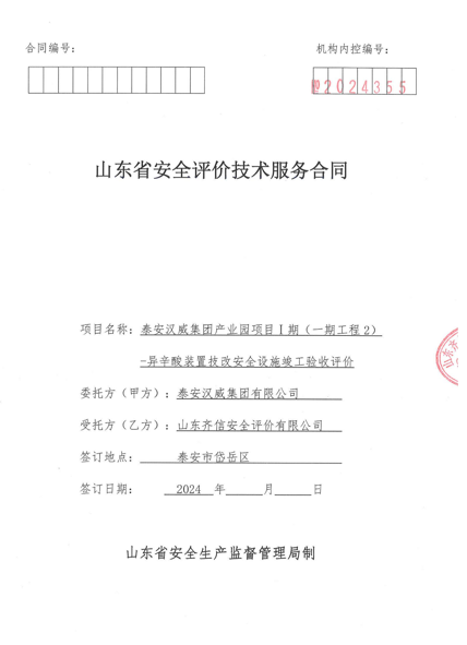 | 泰安漢威集團有限公司 泰安漢威集團產業(yè)園項目Ⅰ期(一期工程2)-異辛酸裝置技改 |