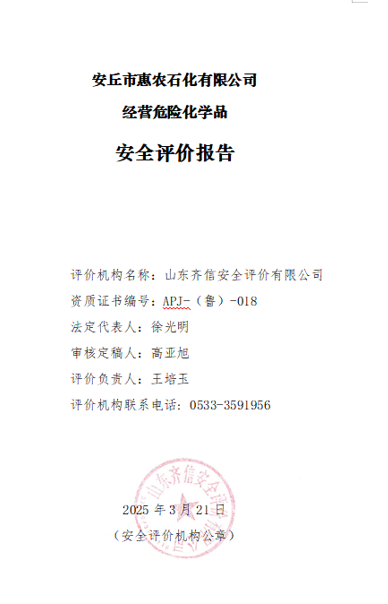 | 安丘市惠農(nóng)石化有限公司 經(jīng)營(yíng)危險(xiǎn)化學(xué)品安全評(píng)價(jià)報(bào)告 |