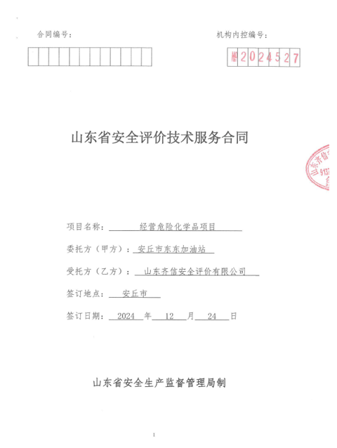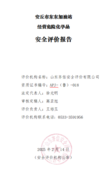 | 安丘市東東加油站 經(jīng)營(yíng)危險(xiǎn)化學(xué)品安全評(píng)價(jià)報(bào)告 |