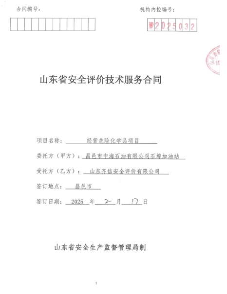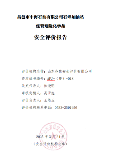 | 昌邑市中海石油有限公司石埠加油站 經(jīng)營(yíng)危險(xiǎn)化學(xué)品安全評(píng)價(jià)報(bào)告 |